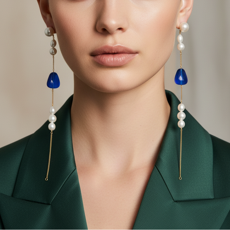 2024SS Collectionにて発表されたDries Van Notenのブルーストーンイヤリングは、天然パールとブルーストーン、ゴールドトーンのパーツを組み合わせたアーティスティックなデザインが魅力の逸品。耳元に程よく存在感を与え、シンプルなトップスやワンピースに合わせるだけで、一気にラグジュアリーで洗練された印象に。軽量設計で長時間の装着も快適なため、日常使いからパーティーや特別なイベントまで幅広く活躍します。