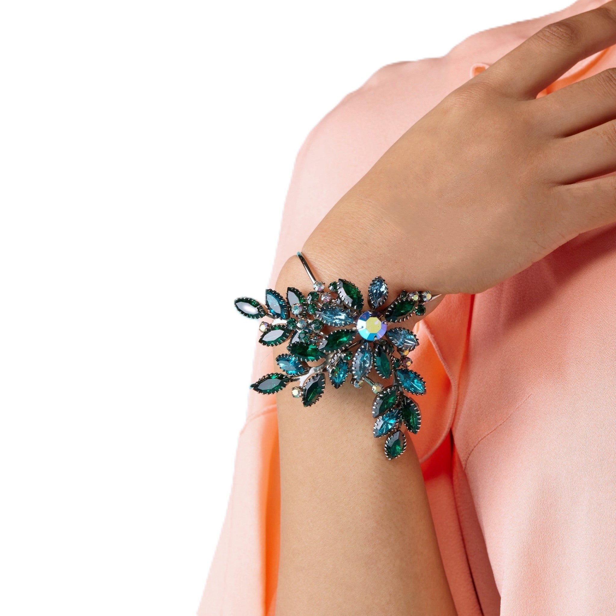 グリーンを基調としたブレスレットは、一部にブルーが装飾されており、さわやかな印象を与えます。