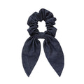 オールシーズン使えるデニム地のリボンシュシュ。コーディネートを格上げするデニムのヘアアクセサリーは、スタイルのポイントに。アップヘアやポニーテールに、アクセントにしやすいアイテムです。