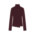 高品質なビスコースブレンド素材を使用しており、しなやかで暖かい着心地です。リブ編みのハイネックとアシンメトリーな肩デザイン、さらにサイドにあしらわれたボタン付きスリットが魅力の逸品。