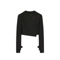 クラシックなブラックジャケットを、斜めのカッティングとシャープなラインで再構築し、モード感あふれるシルエットに仕上げています。