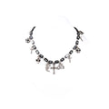 こちらは、全体にブランドネーム、スカル、クロスがレイアウトされ、中央に「J」,「G」と十字が配置されているネックレス。アヴァンギャルドなデザインの多い、John Gallianoらしさを感じられるアイテムです。