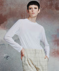 程よい透け感があり、ややゆとりのあるシルエットが女性らしさを醸し出すトップス。 コットン100%で、着心地は抜群です。 浅めのラウンドネックとの組み合わせが、シンプルでもこなれた印象をプラス。 バックに切り替えを設定しているのもポイントです。 デニムやワイドパンツに合わせるだけでハンサムに決まる一枚。 アウターに響かないので、ニットカーディガンなど冬のインナーとしても活躍します。