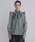 上品な透け感のあるOSLOWオリジナル素材を使用したブラウス。大ぶりのリボンや肩と袖口のフリルがロマンチックな甘さがありながらも、ツイードの表情により大人っぽく着られる一枚です。タイトスカートやゆったりとしたワイドパンツやデニムに合わせて、メリハリのある大人フェミニンなコーディネートを楽しむのもおすすめなアイテムです。