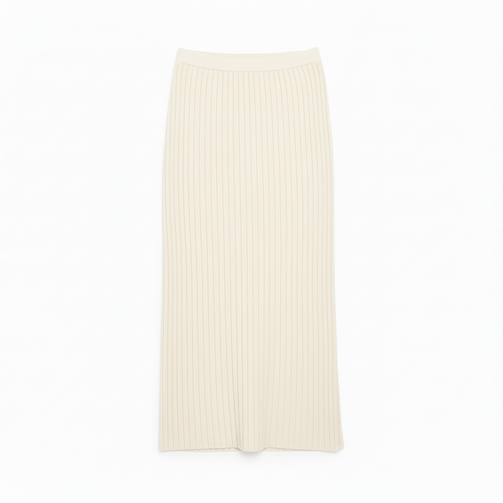 カシミア100%針抜きストライプのニットスカート。
