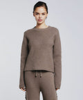 カシミヤ100%の天竺生地を使用した、暖かなトップスです。ベーシックなクルーネックとコンパクトなシルエットで着まわし力は抜群。一度着るとやみつきになる柔らかな肌触りが魅力です。同素材のカーディガンとアンサンブルにしたり、パンツとセットアップで合わせるととてもおしゃれ。カシミヤは無染色のものを使用しており、地球に優しいエコロジーな取り組みから生まれたナチュラル素材になっています。斜めの総柄が個性的な表情を演出する一枚です。