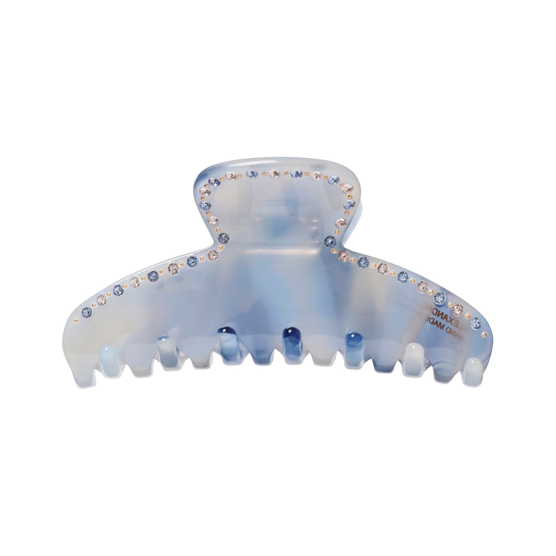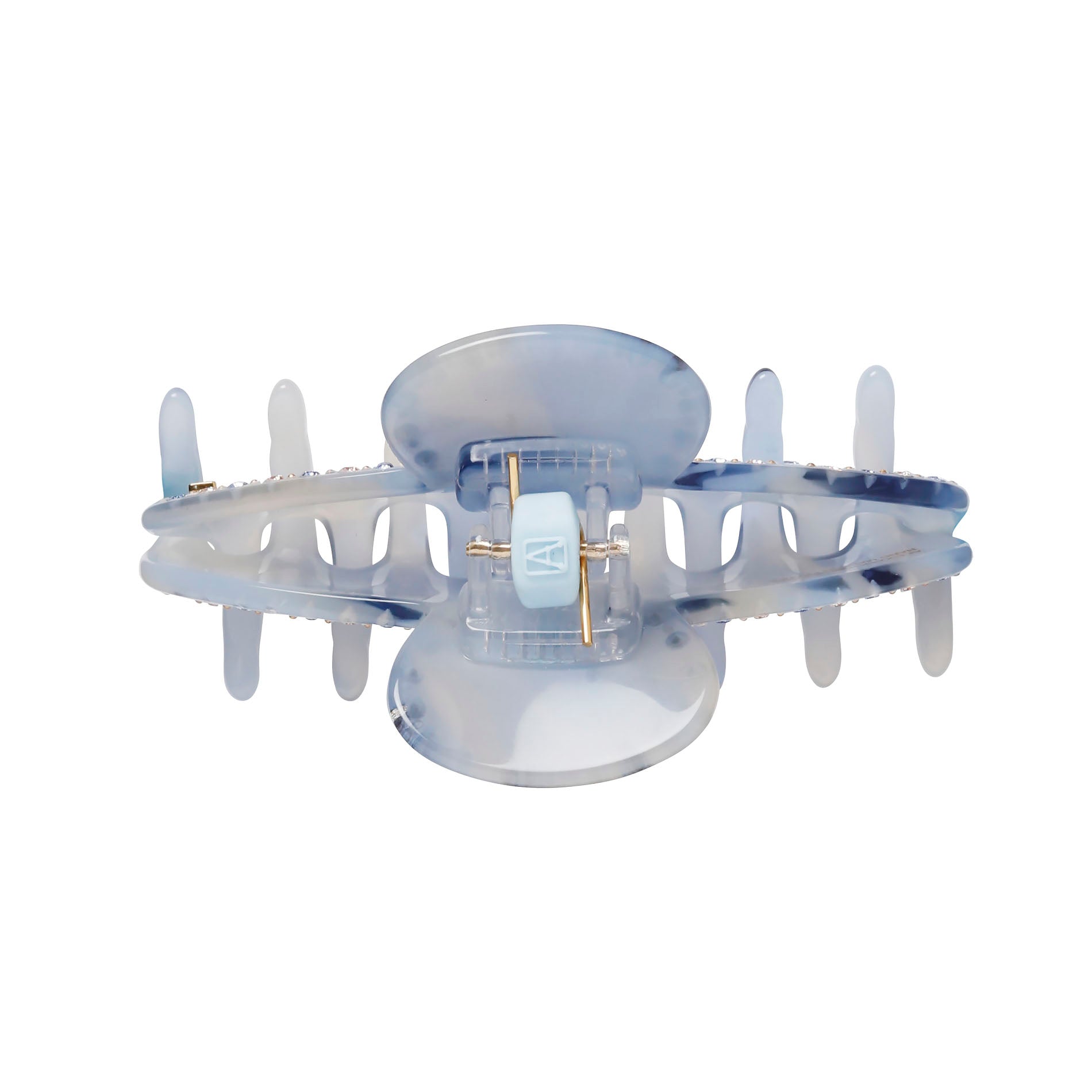 涼しげで爽やかなクリアなマーブルパターンのクリップ。抽象絵画を思わせる、落ち着いたブルーとベージュのコントラストカラーは、エレガントなスタイルを昇華します。さりげなくライン状に施されたブルーとベージュのスワロフスキー®・クリスタルが、アクセントに。