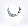 ライトブルーを基調としたネックレスは、部分的にブラックが装飾されており、爽やかで洗練された印象を与えます。