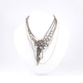 様々な素材が組み合わさったネックレスは、シルバーチェーン、クリスタル、パールが合わさることにより、ハードさとやわらかさのバランスがとれたアイテムです。