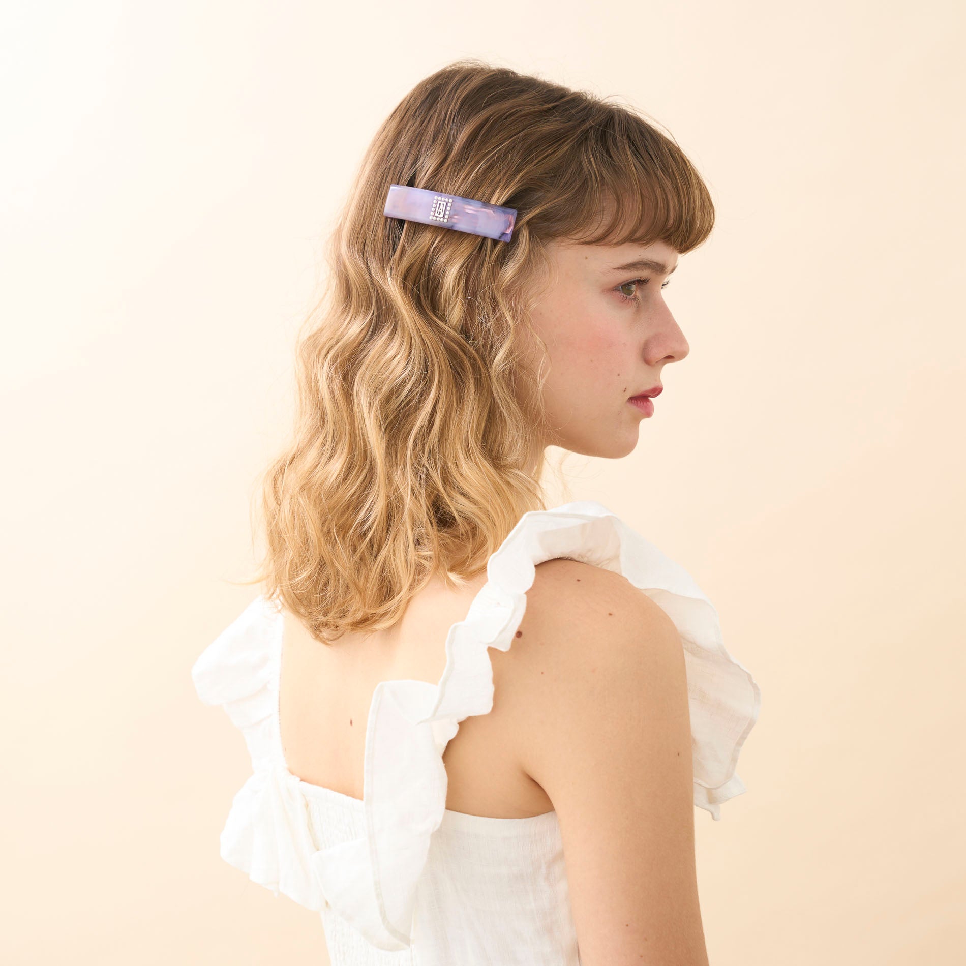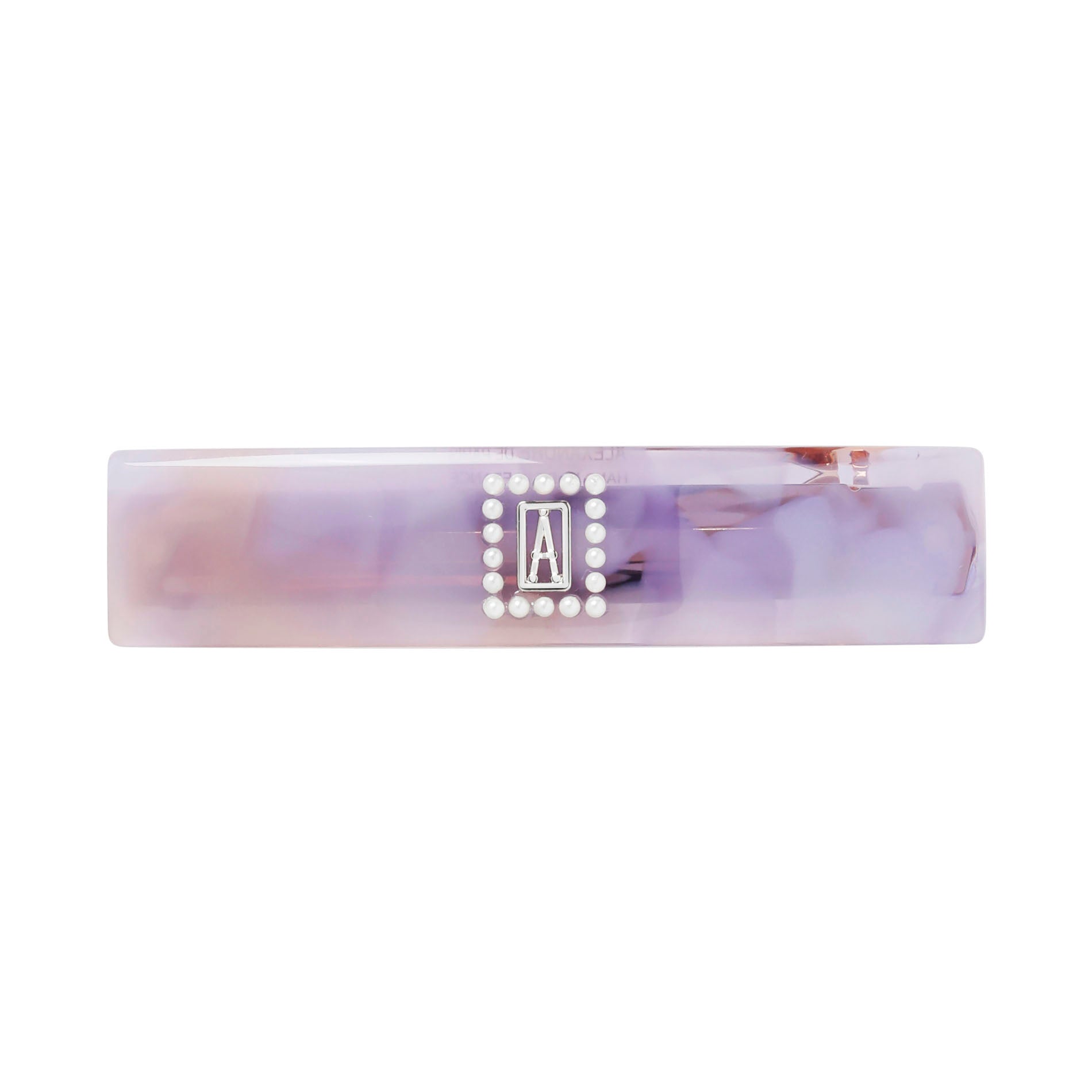 印象派の絵画作品から出てきたような、透明感と繊細な優雅さを楽しめるバレッタ。美しいマープルパターンのクリアアセテートは、模様の出方がそれぞれ異なるため、一点物として堪能できます。スワロフスキー®・クリスタル パールで囲んだセンターのビッグロゴがモダンに昇華し、普段のスタイルも格上げしてくれるアイテムです。